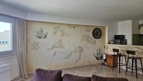 Gelegen in Boulouris-sur-Mer, nur 4,1 km von Bahnhof St-Raphaël-Valescure entfernt, bietet die Unterkunft T2 Boulouris 55m direkt am Strand Übernachtungsmöglichkeiten mit kostenlosem WLAN. 800 m von Strand Plage d'Arène Grosse entfernt gelegen bietet die Unterkunft eine Bar und einen kostenlosen Privatparkplatz.