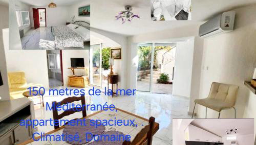 Gelegen in Sainte-Maxime, nur 700 m von Strand Plage des Éléphants entfernt, bietet die Unterkunft Les Rosières Sainte Maxime-Golf de Saint Tropez, climatisée direkt am Strand Übernachtungsmöglichkeiten mit einem Garten, einem eigenen Strandbereich, einer Terrasse und kostenlosem WLAN.