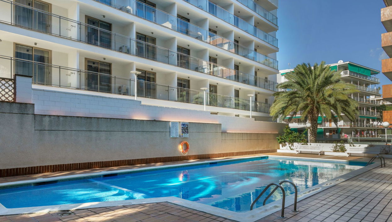 Salou: Gemütliches Appartementhaus "Casalmar", auf 5 Stockwerken. Zentrale Lage, 300 m vom Meer, 300 m vom Strand. Zur Mitbenutzung: Schwimmbad eckig (14 x 7 m, 110 - 200 cm tief, saisonale Verfügbarkeit: 15.Jun. - 15.Sep.). Im Hause: Fahrstuhl. Bushaltestelle "Bus Plana parada Amposta-Buigas" 200 m, Bahnstation "Estación Camp Tarragona" 25 km, Sandstrand "Platja dels Capellans" 300 m. Nahe gelegene Sehenswürdigkeiten: Port Aventura 1.5 km.