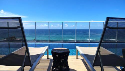 Die Unterkunft Conforto em Stella Maris Perto da Praia e Aeroporto, die über einen Außenpool, eine Gemeinschaftslounge und eine Terrasse verfügt, bietet Übernachtungsmöglichkeiten in Salvador mit kostenlosem WLAN und Stadtblick.
