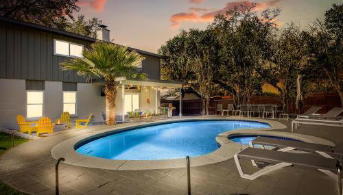 Gelegen in San Antonio bietet die Unterkunft Rodeo Special Pool & Hot Tub Game Rooms Übernachtungsmöglichkeiten mit einem eigenen Pool, einer Veranda / Patio und Poolblick.