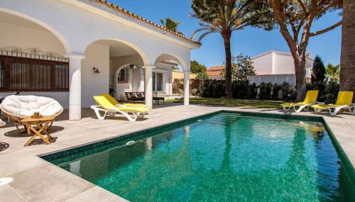 Die Unterkunft Verianmar 4 bedroom villa in Sotogrande with Pool, die über einen Außenpool und eine Bar verfügt, bietet Übernachtungsmöglichkeiten in Guadiaro mit kostenlosem WLAN und Gartenblick.