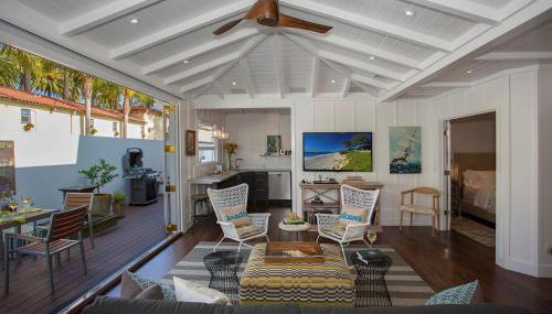 Gelegen in Santa Barbara, 200 m von Strand West Beach und 18 km von University of California, Santa Barbara entfernt, bietet die Unterkunft The Cottage at West Beach by Paradise Retreats Übernachtungsmöglichkeiten mit kostenlosem WLAN einer Klimaanlage und einer Terrasse.