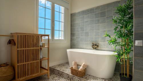 Dieses Ferienhaus mit Klimaanlage besteht aus 2 Schlafzimmern, einem Wohnzimmer, einer voll ausgestatteten Küche mit einem Kühlschrank und einer Kaffeemaschine sowie 2 Badezimmern mit einer Badewanne und einem Haartrockner. In diesem Ferienhaus werden Handtücher und Bettwäsche angeboten.
