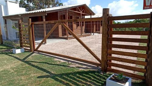 Die Unterkunft Chalé no Hermenegildo, die über einen eigenen Strandbereich verfügt, bietet Übernachtungsmöglichkeiten in Santa Vitória do Palmar mit kostenlosem WLAN und Gartenblick.