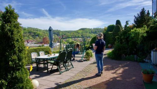 Mit kostenlosen Fahrrädern und Gartenblick, ist die Unterkunft Ferienwohnung Panorama gelegen in Schmalkalden, 32 km von Bahnhof Suhl und 37 km von Schloss Friedenstein entfernt.