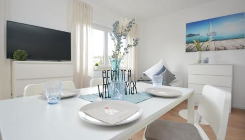 Diese Ferienwohnung befindet sich im Erdgeschoss und ist ausgestattet mit 3 Schlafzimmern, einem Flachbild-TV und einer voll ausgestatteten Küche, die den Gästen einen Kühlschrank, einen Geschirrspüler, eine Waschmaschine, einen Ofen sowie eine Mikrowelle bietet. In dieser Ferienwohnung werden Handtücher und Bettwäsche zur Verfügung gestellt.