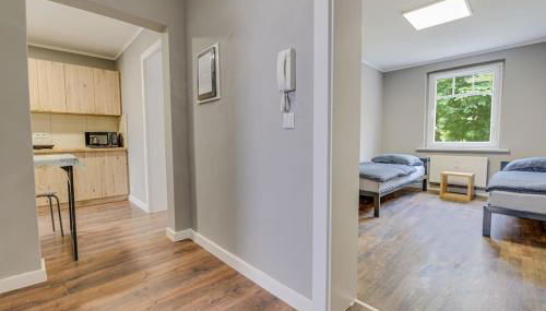 Die Unterkunft 1B Neu renoviert 3 Zi Whg 5 Betten 43,29qm mit einer Terrasse ist gelegen in Schwedt/Oder, 45 km von Bahnhof Szczecin Główny und 46 km von Universität Stettin sowie 46 km von Hafen von Stettin entfernt.