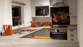 Dieses Ferienhaus mit einer Terrasse und Bergblick bietet 1 Schlafzimmer, ein Wohnzimmer, einen Flachbild-TV, eine gut ausgestattete Küche mit einem Kühlschrank und einem Ofen sowie 1 Badezimmer mit einer Dusche. In diesem Ferienhaus werden Handtücher und Bettwäsche zur Verfügung gestellt.