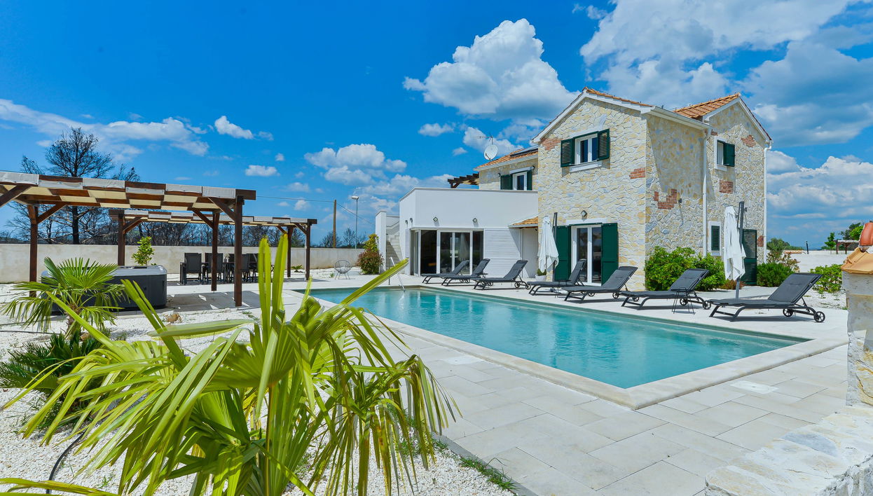 Villa "Violet", auf 2 Stockwerken, Baujahr 2018. 1.5 km vom Zentrum von Zaton, ruhige, sonnige Lage, 1.5 km vom Meer, 2.5 km vom Strand. Zur Alleinbenutzung: Schwimmbad eckig (10 x 4 m, 150 cm tief, saisonale Verfügbarkeit: 01.Mai. - 30.Sep.) mit Innentreppe. Aussendusche, Sprudelbad, Pergola, Gartenmöbel, Grill. Im Hause: Internetzugang, Sauna, Waschmaschine, Wäschetrockner. Parkplatz (für 3 Autos) beim Haus auf dem Grundstück. Einkaufsgeschäft 1.5 km, Restaurant 1.5 km, Bushaltestelle 450 m, Kieselstrand 3 km, betonierter Strand 2.5 km. Nahe gelegene Sehenswürdigkeiten: NP Krka 20 km. Bitte beachten: geeignet für Familien.