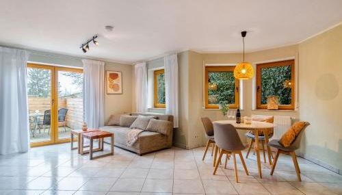 Diese Ferienwohnung verfügt über eine Terrasse sowie Gartenblick, 2 Schlafzimmer, ein Wohnzimmer, einen Satelliten TV, eine gut ausgestattete Küche sowie 1 Badezimmer mit einer Dusche und einer Badewanne. In dieser Ferienwohnung werden Handtücher und Bettwäsche angeboten.