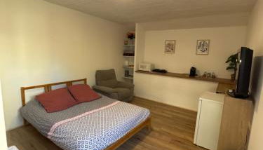 Diese Ferienwohnung mit Klimaanlage mit Direktzugang zu einer Terrasse mit Gartenblick besteht aus 1 Schlafzimmer und einer voll ausgestatteten Küchenzeile. Es gibt einen Flachbild-TV.