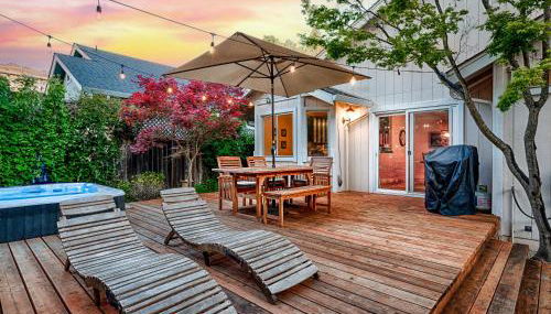 Die Unterkunft Spacious Oasis Hot Tub Backyard Garden 3BR/2BA besticht durch Gartenblick und Übernachtungsmöglichkeiten mit einer Terrasse und einer Veranda / Patio, ungefähr 30 km von Napa Valley Wine Train entfernt.
