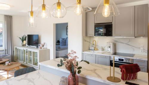 Diese Ferienwohnung bietet einen Balkon, 1 Schlafzimmer, ein Wohnzimmer und eine gut ausgestattete Küche. Es gibt einen Flachbild-TV.