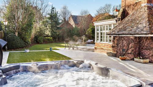 Die Unterkunft Luxury Detached House in Large Private Grounds, with Outdoor Jacuzzi and Sauna besticht durch Gartenblick und einen Garten, eine Terrasse sowie Grillmöglichkeiten, ungefähr 20 km von Trentham Estate entfernt.