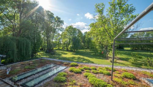 Die Unterkunft Modernes Gartenatelier am Mühlenfließ ist gelegen in Görsdorf und bietet einen Garten und Grillmöglichkeiten.
