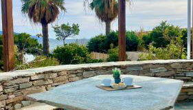 Gelegen in Porto Lafia, nur 90 m von Strand Porto Lafia entfernt, bietet die Unterkunft Scenic Coastal Getaway direkt am Strand Übernachtungsmöglichkeiten mit einem Garten, einem eigenen Strandbereich, einer Gemeinschaftslounge und kostenlosem WLAN.