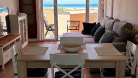 Die Unterkunft Pie de playa en Tarifa besticht durch Meerblick und Übernachtungsmöglichkeiten mit einer Terrasse und einer Veranda / Patio, ungefähr 46 km von Golfplatz San Roque entfernt.
