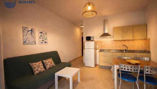 Die Unterkunft MIMARÉA La Graciosa, apartamento bietet ihren Gästen eine Veranda / Patio, einen Sitzbereich, einen Kabel Flachbild-TV, eine voll ausgestattete Küche mit einem Kühlschrank und einer Mikrowelle sowie ein eigenes Badezimmer mit einer Dusche und einem Haartrockner.