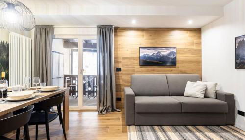 Diese Ferienwohnung mit einem Balkon und Bergblick bietet 2 Schlafzimmer, ein Wohnzimmer, einen Flachbild-TV, eine gut ausgestattete Küche mit einem Kühlschrank und einem Geschirrspüler sowie 1 Badezimmer mit einem Bidet. In dieser Ferienwohnung werden Handtücher und Bettwäsche angeboten.