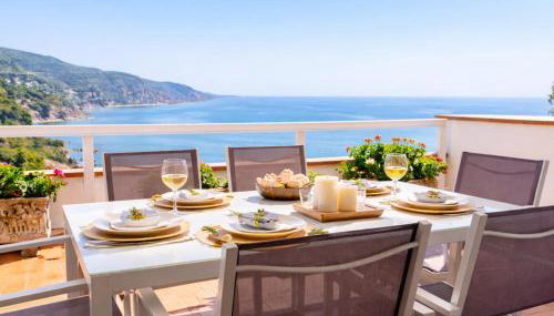 Die Unterkunft ⭑ Terrace + Sea views + Private Beach. What else? ⭑, die über einen Garten, einen eigenen Strandbereich und ein Restaurant verfügt, bietet Übernachtungsmöglichkeiten in Tossa de Mar mit kostenlosem WLAN und Bergblick.
