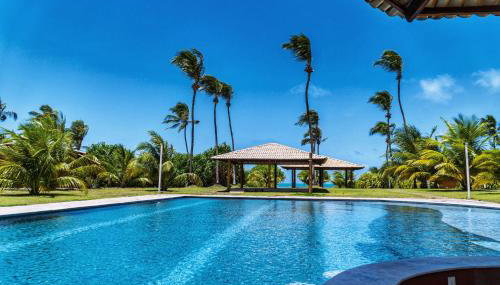 Die Unterkunft São Miguel do Gostoso RN Casa em Condomínio Piscina Churrasqueira privativas frente ao Mar, die über einen Außenpool, einen Garten und einen eigenen Strandbereich verfügt, bietet Übernachtungsmöglichkeiten in São Miguel do Gostoso mit kostenlosem WLAN und Meerblick.