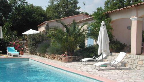 Die Unterkunft le studio bleu, die über eine Terrasse verfügt, bietet Übernachtungsmöglichkeiten in Tourtour mit kostenlosem WLAN und Poolblick.
