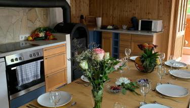 Die Unterkunft Jurahäusle Möhrenbachtal - Sauna&Whirlpool für 2-12 Personen, die über eine Terrasse verfügt, bietet Übernachtungsmöglichkeiten in Treuchtlingen mit kostenlosem WLAN und Gartenblick.