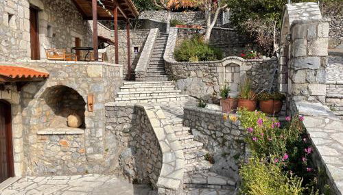 Die Unterkunft Terra Petra Villa at Psari Trikolonon Gortynia, die über einen Garten verfügt, bietet Übernachtungsmöglichkeiten in Psárion mit kostenlosem WLAN und Bergblick.
