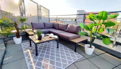 Ulmer Penthouse für 7, Arbeitsplatz, XXL-Dachterrasse, Grill, Wii