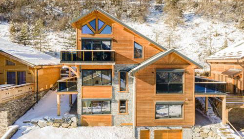 Die Unterkunft Chalet Lumière - LaGodille Prestige - 16 personnes - Pra Loup, die über eine Terrasse und Grillmöglichkeiten verfügt, bietet Übernachtungsmöglichkeiten in Uvernet-Fours mit kostenlosem WLAN und Bergblick.