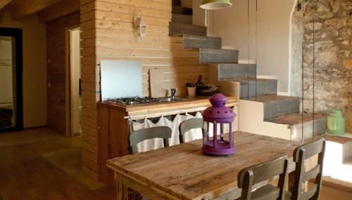 Dieser Bauernhof mit Bergblick hat Parkettböden und 1 Schlafzimmer sowie 1 Badezimmer mit einem Bidet, einer Dusche und kostenlosen Pflegeprodukten. Es gibt einen Sitzbereich, einen Essbereich und eine Küchenzeile komplett ausgestattet mit einem Kühlschrank und einer Herdplatte.