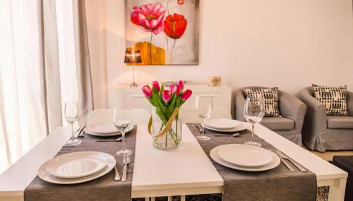 Diese Ferienwohnung mit Klimaanlage besteht aus 2 Schlafzimmern, einem Wohnzimmer, einer voll ausgestatteten Küche mit einem Kühlschrank und einer Kaffeemaschine sowie 1 Badezimmer mit einem Bidet und einer Dusche. Es gibt einen Flachbild-TV mit Kabelkanälen und einen Blu-ray-Player.