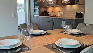 Die Unterkunft Haus Albatros EG - Exklusive Fewo für 4 Personen ist ausgestattet mit 2 Schlafzimmern, einer Küchenzeile mit einem Kühlschrank und einem Geschirrspüler, einer Waschmaschine und 1 Badezimmer mit einem Haartrockner. Für zusätzlichen Komfort kann die Unterkunft Handtücher und Bettwäsche gegen Aufpreis bieten.