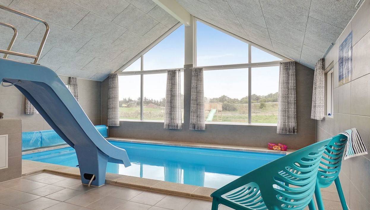 Einfamilienhaus, Baujahr 2019. 800 m vom Meer. Zur Alleinbenutzung: Grundstück 1'354 m2, gepflegter Garten, Hallenbad (3 x 5 m, 15 m2, 160 - 160 cm tief). Terrasse (100 m2), Grill, Kinderspielplatz (Rutschbahn, Schaukel). Im Hause: Sauna, Tischfussball, Trampolin, Waschmaschine, Wäschetrockner. Parkplatz beim Haus. E-Ladestation. Lebensmittelgeschäft 2 km. Der Besitzer akzeptiert keine Jugendgruppen.