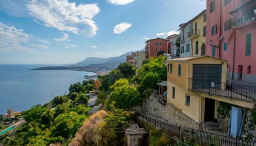 Gelegen in Ventimiglia, nur 1,3 km von Strand Spiaggia dei Balzi Rossi entfernt, bietet die Unterkunft Total sea View Grimaldi direkt am Strand Übernachtungsmöglichkeiten mit einer Terrasse und kostenlosem WLAN.