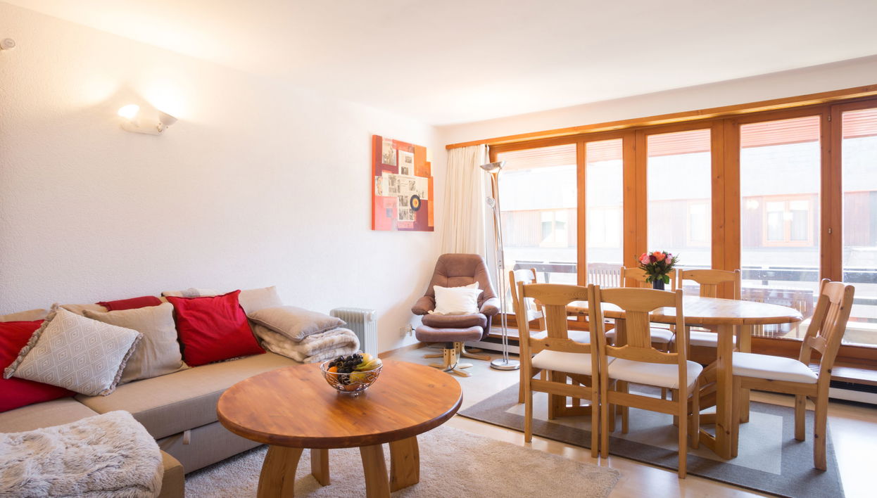 "Combire 210", 3-Zimmer-Wohnung im 2. Stock. Komfortabel und gemütlich eingerichtet: Wohn-/Esszimmer mit TV. Ausgang zum Balkon, Richtung Osten. 1 Zimmer mit 1 Doppelbett. 1 Zimmer mit 2 Betten. Küche (3 Kochplatten, Backofen, Mikrowelle). Bad/WC, sep. WC. Balkon, Ostlage. Balkonmöbel. Zur Verfügung: Internet (Wireless LAN). Bitte beachten: Nichtraucher-Unterkunft.