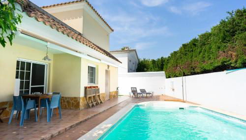 Dieses Ferienhaus mit einer Terrasse und Poolblick bietet 3 Schlafzimmer, ein Wohnzimmer, einen Flachbild-TV, eine gut ausgestattete Küche mit einem Kühlschrank und einem Geschirrspüler sowie 2 Badezimmer mit einem Bidet. In diesem Ferienhaus werden Handtücher und Bettwäsche angeboten.