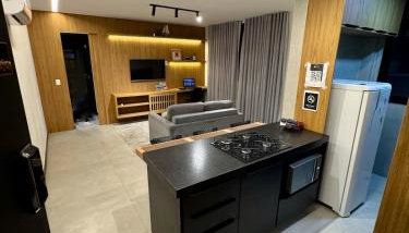 Flat confortável, a 200 metros da praia com estacionamento