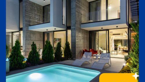 Die Unterkunft IKIES 3 Modern Eco-Friendly Private Seaview SIGNATURE Villas with a Pool ist in Volos, 10 m von Strand Paralia Alykon und 7,2 km von Panthessaliko-Stadion entfernt gelegen und bietet Übernachtungsmöglichkeiten mit kostenlosem WLAN einer Klimaanlage und Zugang zu einem Garten mit einem Außenpool.