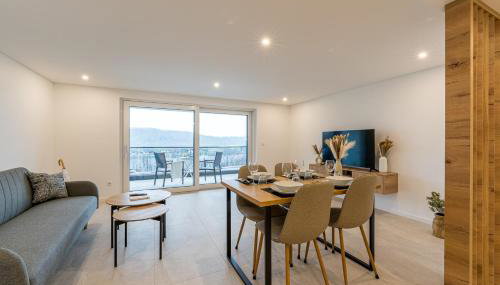 Diese Ferienwohnung mit einer Terrasse und Flussblick hat 2 Schlafzimmer, ein Wohnzimmer, einen Flachbild-TV, eine gut ausgestattete Küche mit einem Kühlschrank und einem Geschirrspüler sowie 1 Badezimmer mit einer Dusche. In dieser Ferienwohnung werden Handtücher und Bettwäsche angeboten.