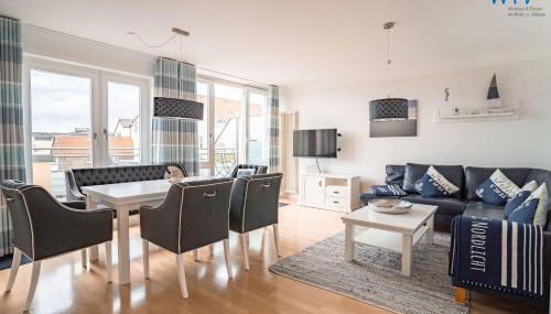 Die Unterkunft Kaiserhof Ferienwohnung 303 besticht durch Meerblick und Übernachtungsmöglichkeiten mit einem Balkon und einer Kaffeemaschine, ungefähr 50 m von Strand auf Wangerooge entfernt.