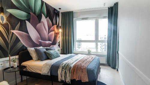 Diese Ferienwohnung mit einem Balkon und Stadtblick bietet 1 Schlafzimmer, ein Wohnzimmer, einen Flachbild-TV, eine gut ausgestattete Küchenzeile mit einem Kühlschrank und einem Geschirrspüler sowie 1 Badezimmer mit einer Dusche. In dieser Ferienwohnung werden Handtücher und Bettwäsche zur Verfügung gestellt.