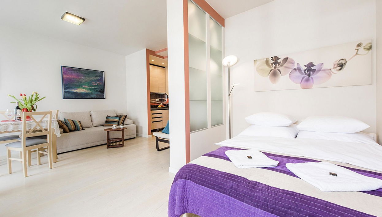 Studio-Apartment, geeignet für 4 Personen, befindet sich in der Wohnsiedlung 'Nowe Bielany', 100 m von der Metrostation Młociny entfernt.