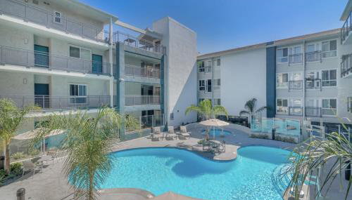 Die Unterkunft Lux Oasis in West Hollywood, Free Parking & Swimming pool, die über einen Außenpool, ein Fitnesscenter und eine Gemeinschaftslounge verfügt, bietet Übernachtungsmöglichkeiten in Los Angeles mit kostenlosem WLAN und Gartenblick.