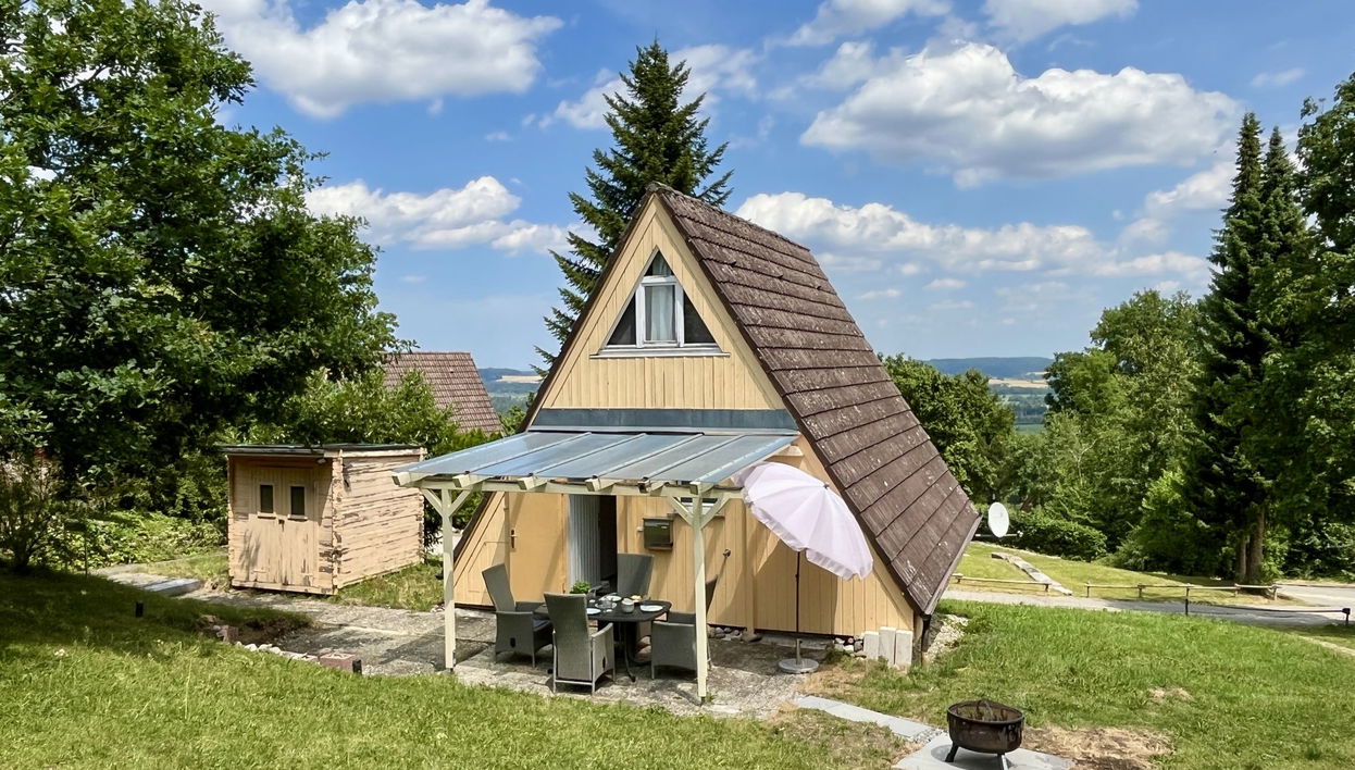 Feriensiedlung "Pfrungen". Oberhalb von Illmensee, 1.8 km vom Zentrum von Illmensee, 30 km vom Zentrum von Meersburg, 55 km vom Zentrum von Lindau, am Hang, 1.8 km vom See. Zur Alleinbenutzung: Grundstück 200 m2 mit Rasen und Bäumen. Einkaufsgeschäft 1.8 km, Bushaltestelle "Pfrungen Abzwg. Feriendorf" 850 m, Bahnstation "Überlingen" 29 km. Golfplatz (9 Loch) 7 km.