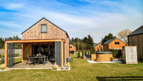 Die Unterkunft Modern house with private hot tub, die über eine Terrasse verfügt, bietet Übernachtungsmöglichkeiten in Kołczewo mit kostenlosem WLAN und Gartenblick.