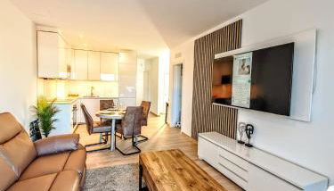 Diese Ferienwohnung mit einem Balkon und Meerblick bietet 2 Schlafzimmer, ein Wohnzimmer, einen Flachbild-TV, eine gut ausgestattete Küche mit einem Kühlschrank und einem Geschirrspüler sowie 1 Badezimmer mit einer Dusche. In dieser Ferienwohnung werden Handtücher und Bettwäsche angeboten.