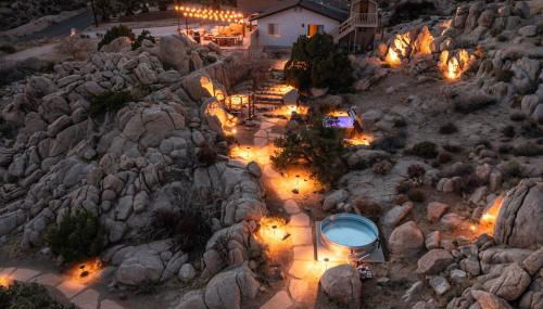 Die Unterkunft Cozy Retreat Amidst Boulders verfügt über Bergblick und Übernachtungsmöglichkeiten mit einer Terrasse und einer Veranda / Patio, ungefähr 46 km von Palm Springs Aerial Tramway entfernt. 46 km von Besucherzentrum Palm Springs entfernt gelegen bietet die Unterkunft einen Außenpool und einen kostenlosen Privatparkplatz.