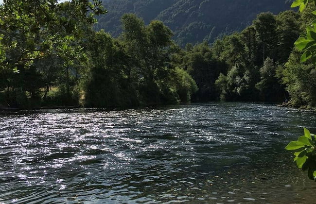 Cabaña Rústica 2 Maravillosa,con Troncos Nativos, con Orilla de Río Trancura